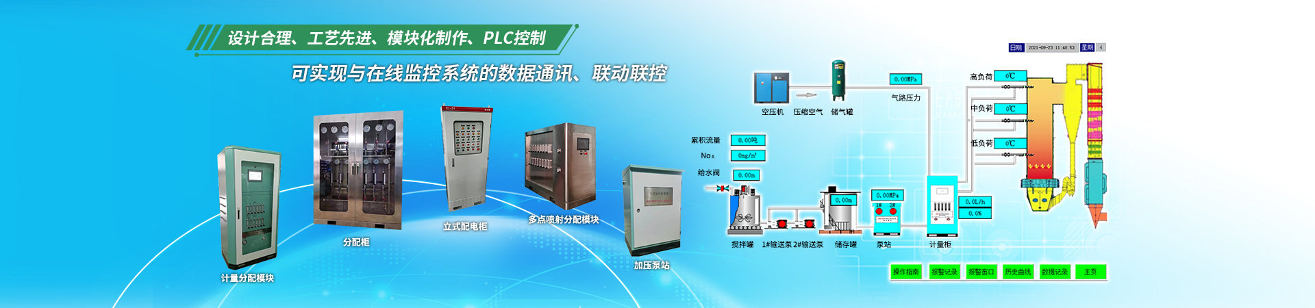 脫硝用還原劑(尿素溶液/氨水)及稀釋用軟化水通過本模塊加壓供給“稀釋計量分配…